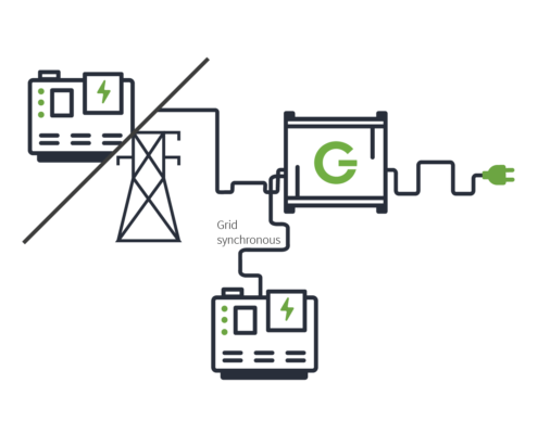 We have talked about the possibilities when there is either a grid connection or a diesel generator on location – but what if there are both? Or what if the grid connection or one diesel generator alone is not enough to supply the necessary power? In this situation, a load sharing set-up can be a fitting solution. Taking the example of one grid connection and one diesel generator, the battery will make sure that the grid connection is used optimally. Only when the power supplied by the grid connection is not sufficient, then the diesel generator will be added into the mix to supply energy grid synchronous and with an optimal load. By using the combination of grid and generator, sufficient energy can be supplied without the necessity of larger grid connection. This is also possible with two diesel generators, which will then run alternately to prevent overstraining one generator. Similarly, to the combination of a grid and a generator, both of the generators will only run simultaneously when necessary.