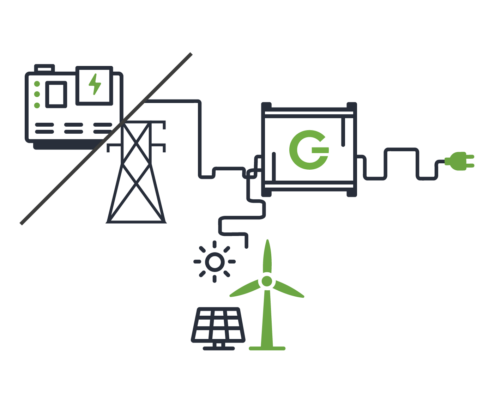 When a mobile battery is connected to a diesel generator, this diesel generator will not necessarily have to run the full day and night as normally would be the case. Instead, the battery will be charged by the diesel generator until a maximum capacity and afterwards the diesel generator can be turned off until the battery needs to be charged again. This interplay of charging and the discharging of the battery until a certain threshold means that the diesel generator’s running hours can be greatly reduced, and the load is optimized. Since the running hours of the diesel generators correspond to the charging cycles of the battery, the term cycling is used in this case.
