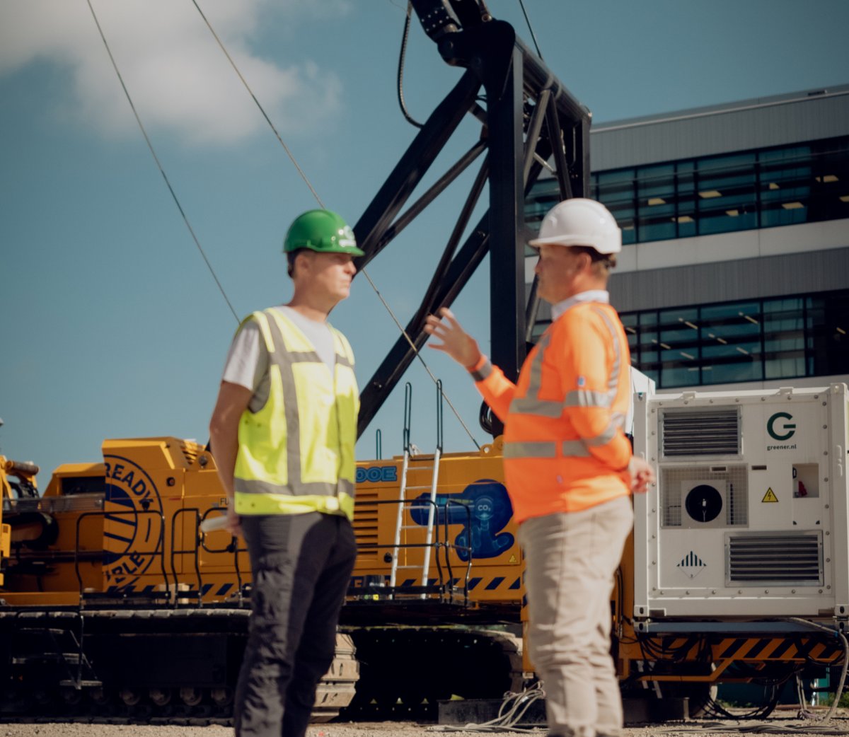 “Trabajar con Greener en el hincado de tablestacas superó nuestras expectativas. Nuestras máquinas funcionaron a la perfección con la energía verde de la batería móvil; ¡incluso nos sobró energía al final del día!”