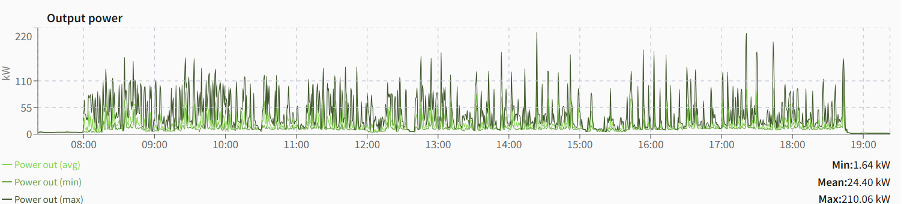 The inverter power of our battery systems means it can be charged very fast, in this case at 400 amps maximum. This means the generator can charge the battery quickly and then return to silent running. This results in less diesel used, more silent hours, and reduced emissions. This is a great benefit for projects in residential areas and improves the working environment on site. Rapid charging sets Greener’s products apart from other solutions that charge slower and are less able to deal with transient load patterns.